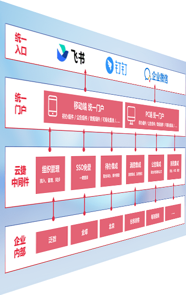 对协作平台提供支持服务,,,支持企业应用与协作平台对接,,,包含组织同步、、、消息集成、、待办集成等。。。。支持目前主流的协作平台:钉钉、、、、企微和飞书。。。
