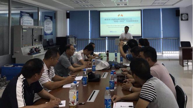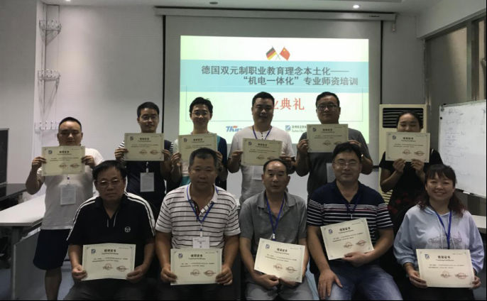 2019年7月12日,,,由天坤国际教育集团主办,,,,苏州尊龙时凯教育科技有限公司承办的德国双元制职业教育理念本土化培训圆满结束。。五天的培训,,理论结合实践,,,讲座课程中培训师使用实际典型案例深入地分析和推演,,,结合体验式企业参观考察,,在实践中学习,,,充分调动参培老师的积极性,,,,来自天坤国际教育集团的四所直属学校机电专业的骨干教师从5天的系统化培训中收获良多,,,满载而归。。。