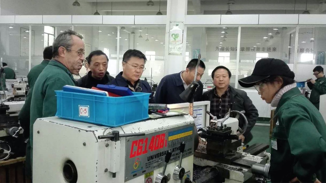 外教汉斯介绍学生钳工操作