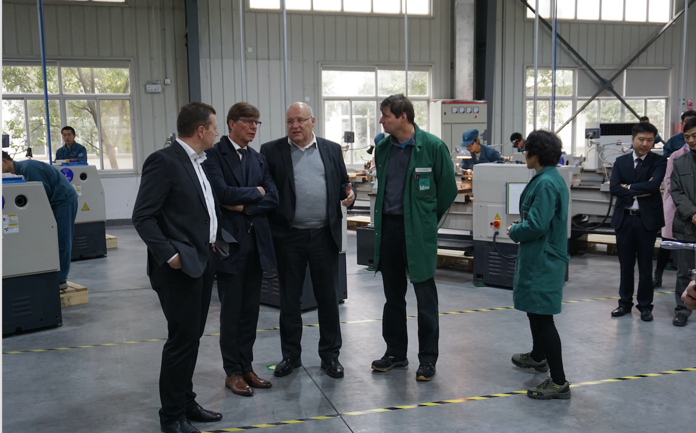 11月29日,,,德国莱比锡工商业联合会(IHK)主席Kirpal先生及总经理Hofmann博士来到江苏,,,,首先参观我方和德国bbw教育集团的中德合作项目-江苏无锡公共实训基地的bbw学习型工厂,,,,对我们完全按照德国标准设计规划的教学场地以及严格贯彻德国双元制教学大纲和实训标准的教学过程表示赞许,,在看到项目学生加工出的作品之后,,,,更是竖起大拇指,,,,表示这才是“德国标准”的高技术人才。。。。