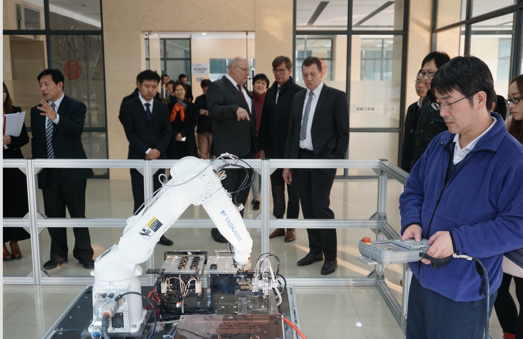 30日下午,,代表团来到bbw在苏州的一所合作院校——苏州高等职业技术学校,,bbw苏州高层和学校领导一起考察并认可了中德职业技术培训中心的实训设施和德国双元制职业教育模式在苏高职的本土化实践。。